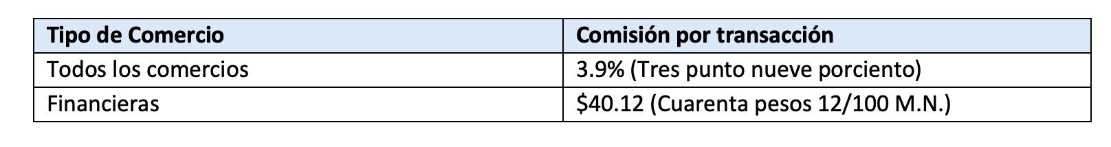 Las comisiones que EL COMERCIO deberá pagar a SPIN por la prestación de los servicios serán las siguientes, mismas que podrán consultarse en la siguiente liga https://www.spinnegocios.com/oxxopay